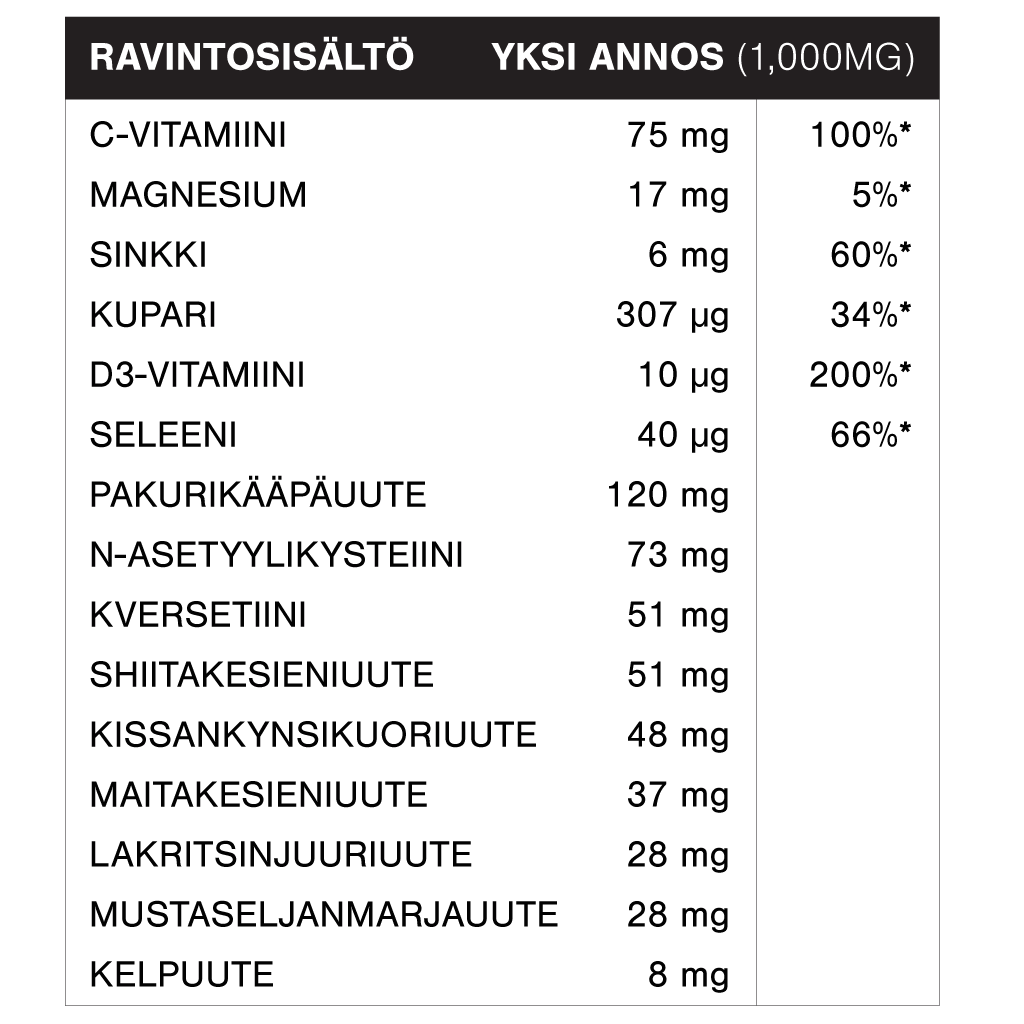 Immunity Blend is a comprehensive immunity-boosting supplement. It contains a total of 15 ingredients, which are designed to work together. One product gives you powerful support and helps you stay healthy and vital, and fight against external pathogens.