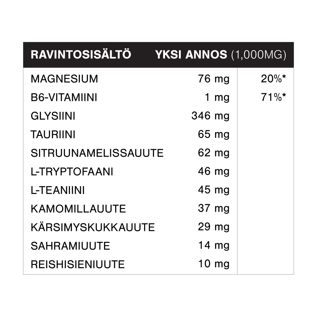 Sleep Blend kannattaa ottaa n. 1-2h ennen nukkumaan menoa, jolloin se alkaa rentouttamaan mieltä ja kehoa, ja valmistamaan sinua tulevaan yöhön. Suosittelemme luomaan rutiinin, jossa Sleep Blendin jälkeen ei käytetä enää puhelinta, TV:tä tai lueta uutisia yms. Stimuloivaa. Näin mielesi saa tilaa rauhoittua ja näytöistä tuleva sininen valo ei pääse estämään sisäistä melatoniinin tuotantoa.